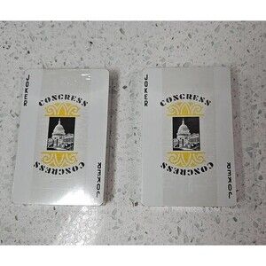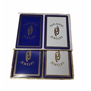 Congress brand set of playing cards come sealed in deluxe sliding hard shell case with felt bottom and gold accents. Deck advertises "paradise jewelry" on card faces for both decks. Case in in very good condition decks inside are sealed. Please see photos. Thanks for looking.