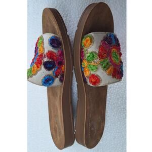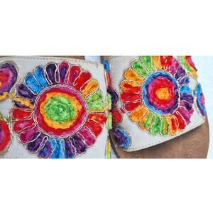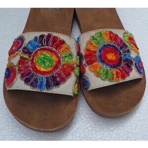 Conkys Pinwheel Slides Slip on Flat Sandals White Multicolor Flower Size 6 Boho