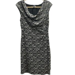 Connect Apparel Gold Black Floral Dark Romantic Cowl Sheath Dress 12 Y2K