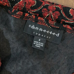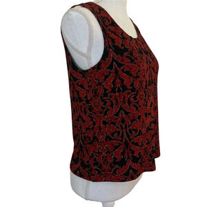 Connected Apparel 90s Black Red Shiny Gold Metallic Tank Top Small Pullover Y2K