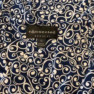 Connected Apparel A-Line Dress. NWOT. Pretty navy and white v-neck dress that is super versatile! You can easily dress it up with heels and accessories or keep it casual with cute sandals. Excellent condition.