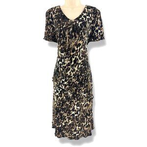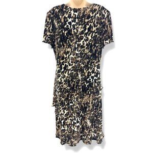 Connected Apparel Animal Leopard Print Bodre Tiered Dress Size 14 Evening Sheath