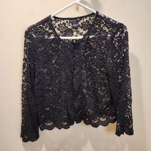 Connected Apparel Black Lace Chemise Cardigan Open Front Size L