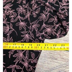 The Connected Apparel Black Metallic Pink Sparkle Liquid Knit Top in Size XL is a festive and stylish addition to any woman's wardrobe. Featuring a boat neckline, long sleeves, and a pullover closure, this tunic-style blouse is perfect for a variety of occasions from casual to formal. The liquid knit fabric with glitter accents adds a touch of sparkle, while the floral pattern and whimsical theme make it ideal for holidays or special events. Made in the United States, this top offers a comfortable fit and season versatility, making it a must-have piece for any fashion-forward woman.