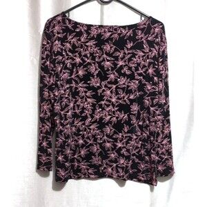 Connected Apparel Black Metallic Pink Sparkle Liquid Knit Top Size XL Festive