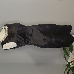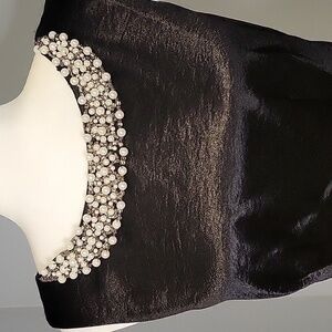 Connected Apparel Black Soft Silk-Like Beaded Neck Detail Cocktail Dress Sz 6