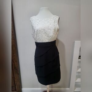 Connected Apparel Black White Colorblock Sequin Lace Cocktail dress NWT size 8P