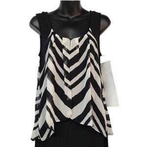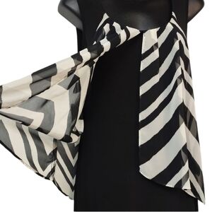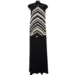 Connected Apparel Black White Striped Full-length Overlay Dress Size 6 NWT
