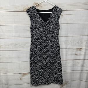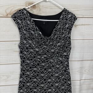 Connected Apparel Black With Silver Details Cap Sleeve Shift Dress Size 12