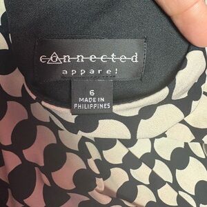 Chic midi dress with a bold geometric pattern. Features a stylish tie waist. Ideal for versatile wear.