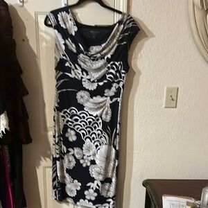 Connected Apparel Black and White Cowl Neck Sheath Dress