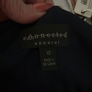 This elegant sheath dress by Connected Apparel features a sophisticated black and white design, perfect for cocktail events or as a wedding guest. The dress showcases a chic cowl neckline and cap sleeves, offering a refined silhouette. Its midi length and strategic floral pattern placement add a touch of modern elegance to your ensemble.