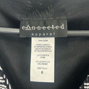 This chic sheath dress by Connected Apparel showcases a striking black and white pattern, perfect for casual or work settings. Featuring a flattering v-neckline and flutter sleeves, this midi dress combines elegance with comfort. The sophisticated design is enhanced by its textured fabric, making it a standout piece in any wardrobe.