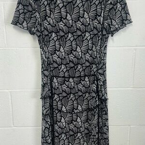 Connected Apparel Black and White Sheath Dress with Flutter Sleeves