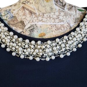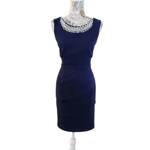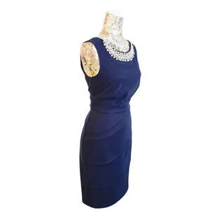 Connected Apparel Blue Tiered Pearl Jewels Embellished Dress sz 6 in EXCELLENT like NEW Condition! Perfect for professional business career wear or Evening Cocktail Party Dance Cruise Wedding