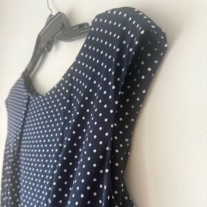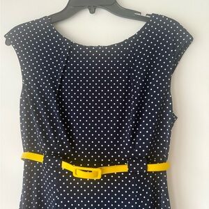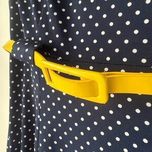 Connected Apparel Navy Polka Dot Dress with Yellow Belt – Size 8