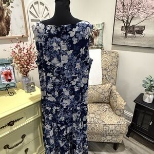 Connected Apparel Blue and White Sleeveless Midi Sundress