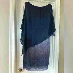 Connected Apparel Cape Overlay Metallic Dress Size 12. Like New