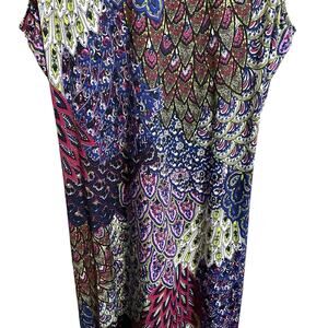 Connected Apparel Colorful Peacock Dress Size XL Sleeveless Vneck Ruched