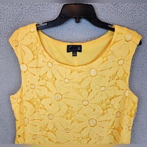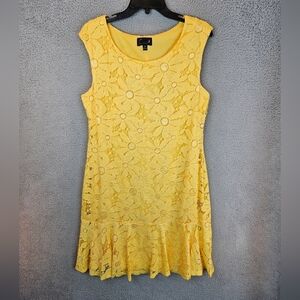 Connected Apparel Coming Up Daisy Yellow Perfect Summer Dress Sz 12 Lace Overlay