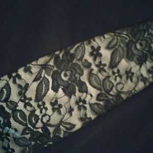 Black Lace over a Nude lining. Wide shoulder straps fit and flare style. Beautiful date night sexy dress...