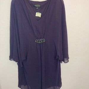 Pretty Dress by Connected Apparel with sheer bat sleeves and a sparkly beaded decorative piece at waist