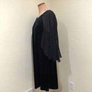 Connected Apparel Dress Size 16 Black Velvet Flutter Caplet Sleeve