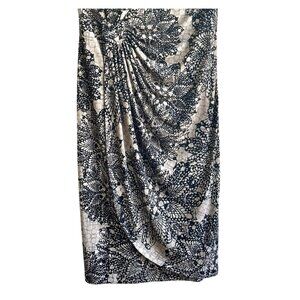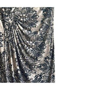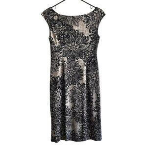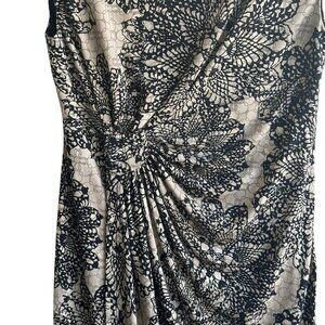 Classic Connected Apparel Women's Black Beige Floral Faux Wrap Ruched Sheath Dress Size 6