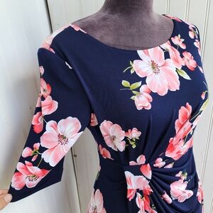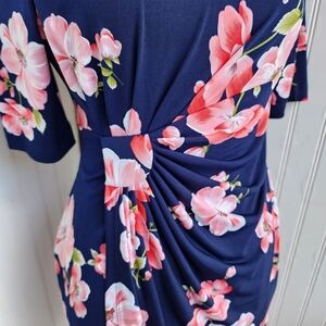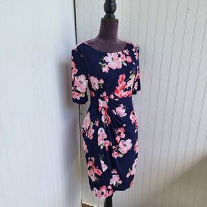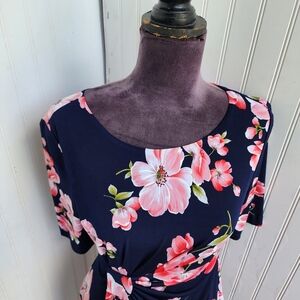 Connected Apparel Dress Womens Navy Blue Pink Floral Ruched Sheath Knee Sz 4P
