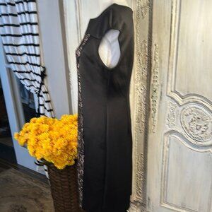 This elegant dress features a stunning black and Blush lace design, perfect for any special occasion. The intricate lace pattern adds a touch of sophistication and style.