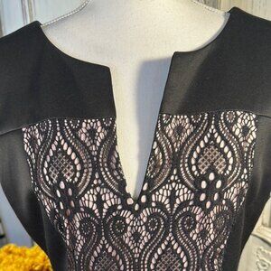 Connected Apparel Elegant Black and Blush Lace Dress
