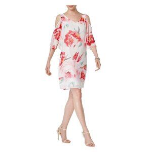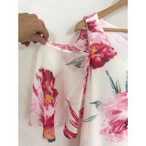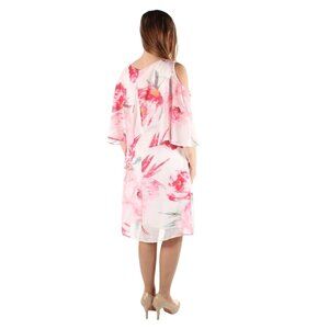 Connected Apparel Elegant Floral Cold Shoulder Chiffon Dress Size 12 Summer