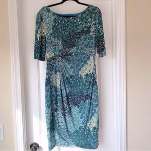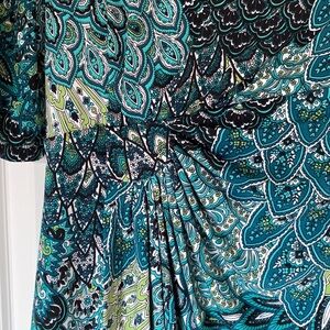 Connected Apparel - Faux Wrap Dress - Green Pattern - Size 12 - EUC