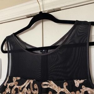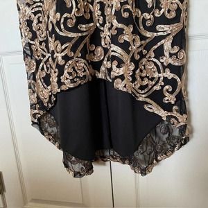 Connected Apparel Formal Maxi Hi-Low Women's 6 Black w/Gold Baroque Appliques