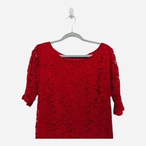 Connected Apparel Holiday Lace Knee Length Dress Size 16W Christmas Red