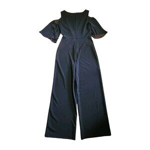 Connected Apparel Jumpsuit Womens Size 6 Solid All Black Cold Shoulder Zip Up