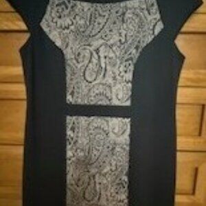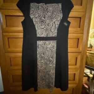 Turn heads in this stunning Connected Apparel knee-length black dress featuring faux embroidered accents that create a slimming, hourglass illusion. Designed to flatter every curve with effortless style, this dress blends classic sophistication with a touch of modern charm.