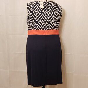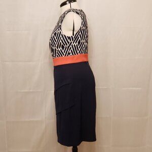 Connected Apparel Multitier Sheath Cocktail Dress in Blue/White/Coral, Size 14W