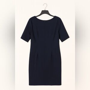 Connected Apparel Navy Blue Dress 14 Slit Neck Stretch Tan Front Panel Classic