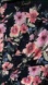 This is a Connected Apparel floral print sheath dress with bell or elbow-length sleeves. It features a dark background with pink and mauve floral patterns and a ruched or faux-wrap detail at the waist.
