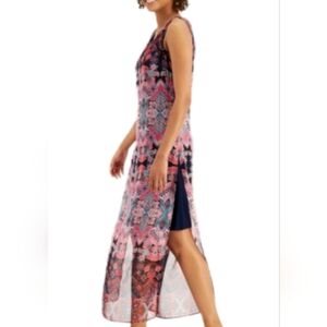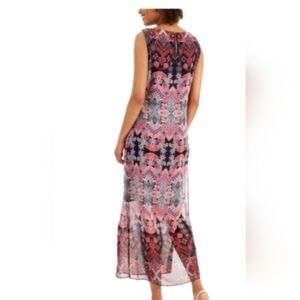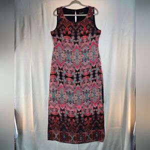 Connected Apparel Pink Floral Abstract Print Navy Lined Summer Shift Dress Sz 10. Perfect dress for running around town or church.