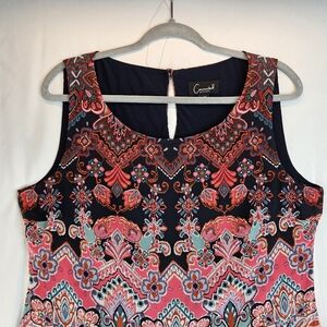 Connected Apparel Pink Floral Abstract Print Navy Lined Summer Shift Dress Sz 10