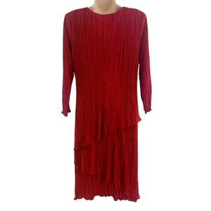 Connected Apparel Red Bodre Tiered Dress Size 12 Holiday Christmas Party Wedding