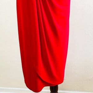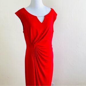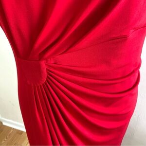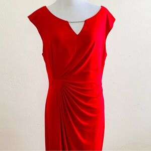 Connected Apparel Red Faux Wrap Dress Short Sleeves Ruching Size 12