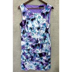 Connected Apparel Sheath Dress Womens 12 Purple Tie Die Ruffle Boho Fairy Hippie