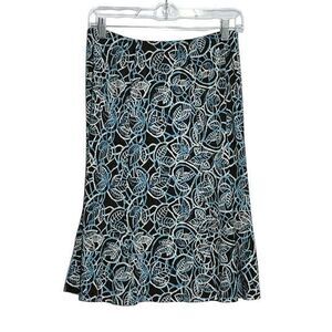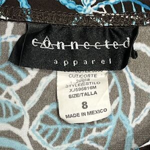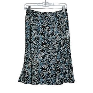 Connected Apparel Skirt A Line Leaf Pattern Brown Blue Stretch Pull on Size 8