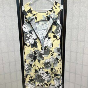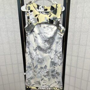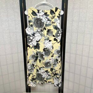 Connected Apparel Sleeveless Fitted Floral Sheath Dress Pale Yellow Grey 14