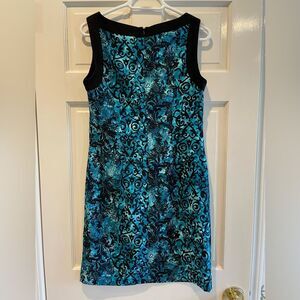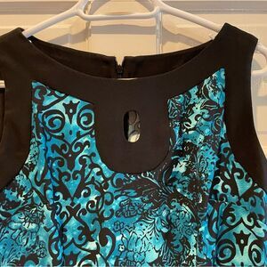 Sleeveless Bodycon midi dress with a keyhole front and a hidden back zipper. Black and teal floral pattern. No flaws. Smoke free, dog friendly home.