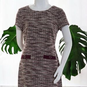 Opt for timeless polish with this mod-inspired stretch tweed sheath dress from Connected Apparel finished with solid contrast welt pocket accents at the front for added sophistication.