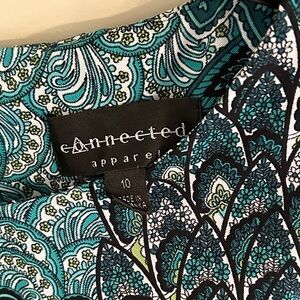 Connected Apparel Teal, Green, White, and Black Patterned Mini Dress